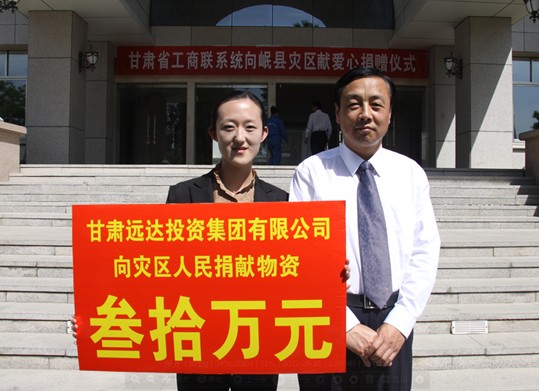 [2012-5-23]扶危濟(jì)困 奉獻(xiàn)社會 [2012-5-23]心系災(zāi)區(qū) 大愛遠(yuǎn)行 [2011-4-10]甘肅遠(yuǎn)達(dá)集團(tuán)向青海玉樹地震災(zāi)區(qū)捐助價值30萬...